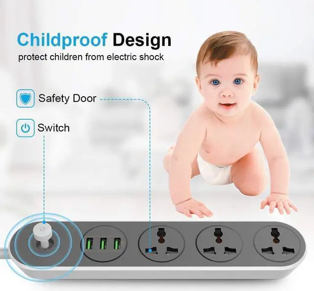 Childproof Design: Creative protection cover design safety door which is designed for protection of young children. This can effectively prevent children from electric shock which can occur if children are able to insert their fingers into the plug sockets.