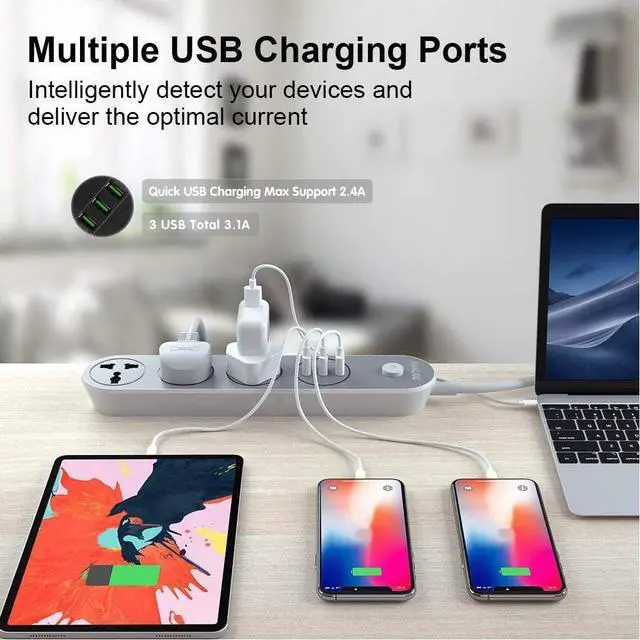 Widely Used: 3 USB power strips, 6ft bold extension cord support long distance demand. Extra wide socket distance support you use every port simultaneous. Widely use in home, office, shop, dorm room or any public place. Also use in Cruise Ship (Non Surge Protector Power Strip)