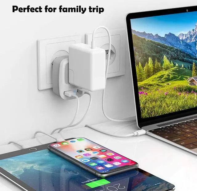 3 in 1 Mini Wall Plug Adapter: This Switzerland outlet adapter accepts the standard N American Charger; Dual USB Ports can charge up to 2.4A Total; Compatible with all USB devices, ideal for charging mobile phone, tablet, digital cameras and more;