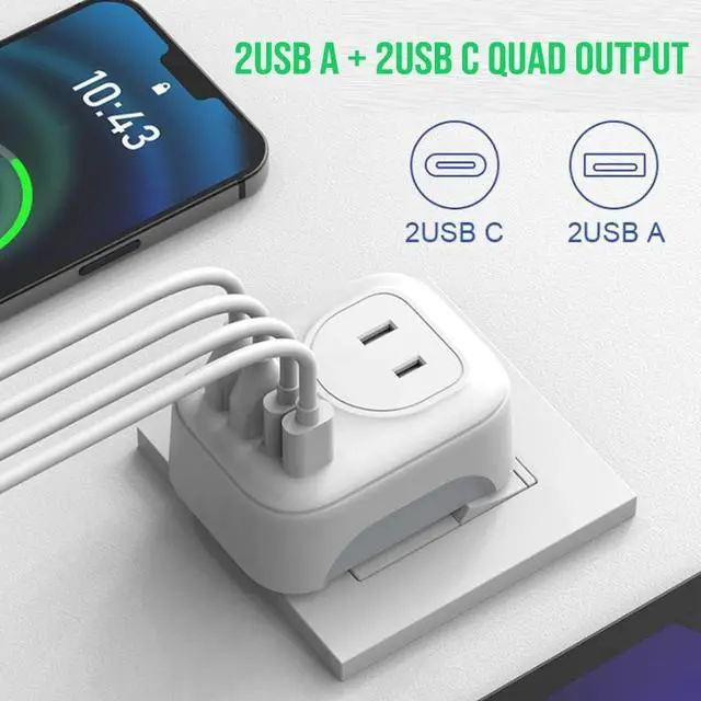 USB: The plug extenders are designed with 2 outlets plus 2 USB charging ports, taking the place of a standard socket, but offering you more usable plugs, allows you to charge 6 devices simultaneously. A very nice travel essentials for you.