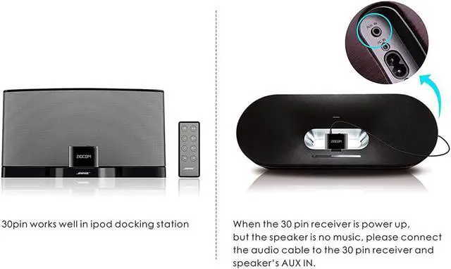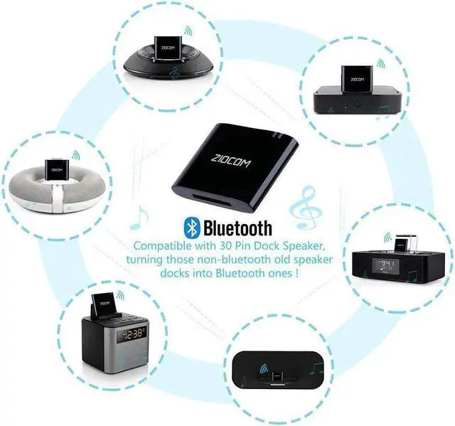 Please Noe: Not every 30 pin dock speaker can work with this ZIOCOM Bluetooth adapter, please check our Compatible Speaker list before you order. It can not work with any cars or motorcycles. Any question about it, you can also feel free to contact with us