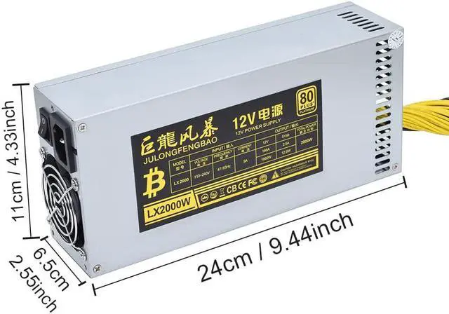 2U Professional Mining Power supply 1800-2000W Support 8 GPU MAX.(Input Voltage 110V, output 1800W ; Input Voltage 220V,output 2000W )