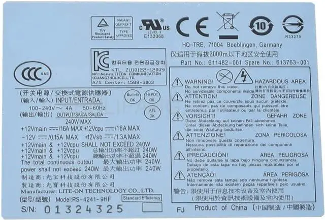 Compatible Part Number:PS-4241-9HF 611482-001 613763-001 611481-001 613762-001 503375-001 508151-001 503376-001 508152-001