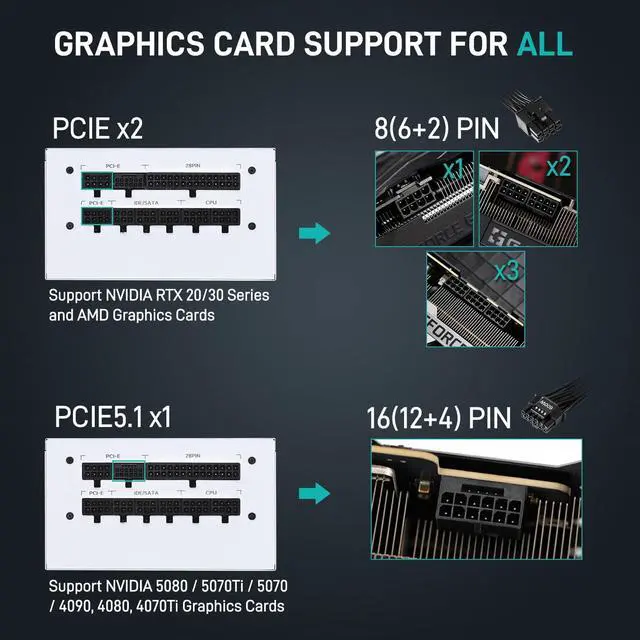 ATX 3.1 & PCIe 5.1 Ready: The PSU can hold up to 200% total power excursion & 300% GPU power excursion