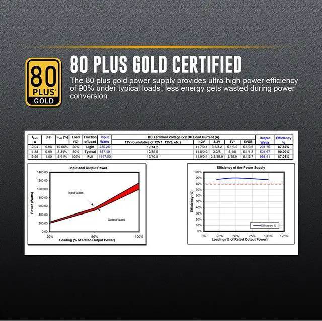 80 plus Gold certified, LLC Pro+DC-DC structure provides very stable voltage output, with 92% efficiency or higher under semi-loads.