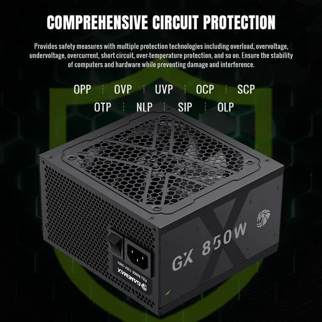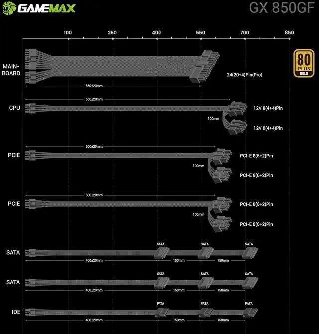 GAMEMAX 850W 80+ Gold Fully Modular Power Supply, ATX 2.53 Version with LLC + DC-DC Circuit, 100240V Full Range, Ultra Silent 120mm FDB Fan, 105°C Mainstream Japanese Capacitors (GX 850GF)