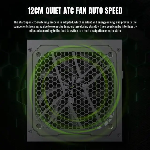 Quiet Cooling & Protection: 120mm FDB silent fan with intelligent temperature control and seven levels of protection for system safety and reliability.