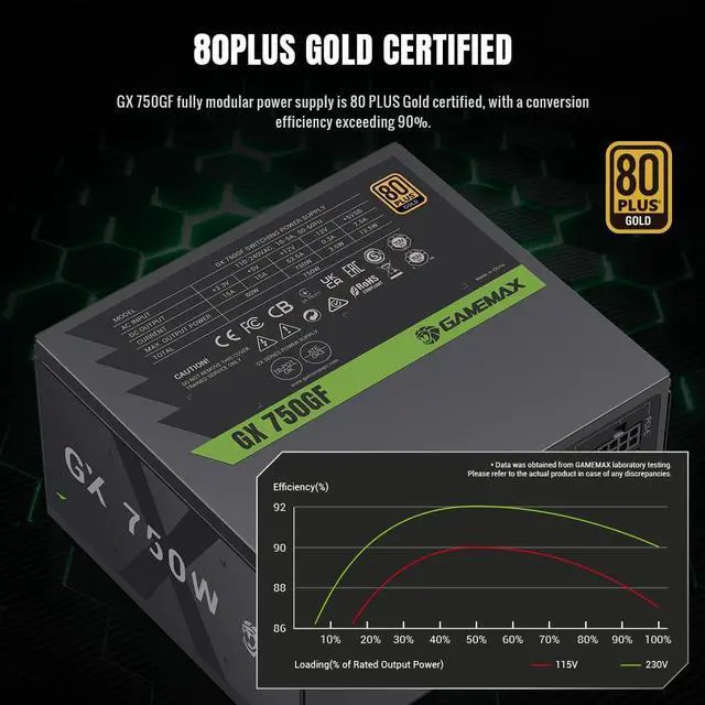 Efficiency Certified: 80 Plus Gold certified with classic efficiency over 92%, delivering stable and energy-saving power for gaming and system builds.