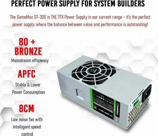 GameMax GT300 Bronze 85 Plus Sata Power Supply Unit - Black