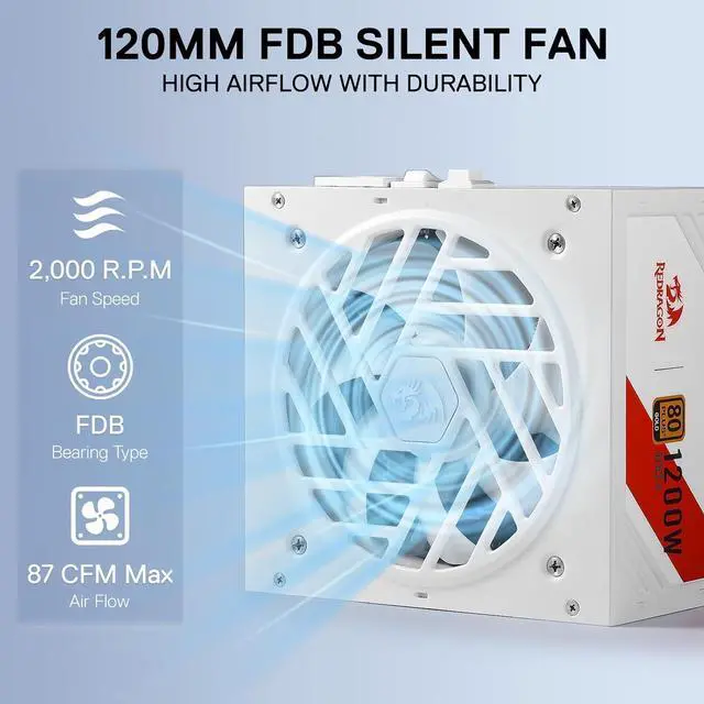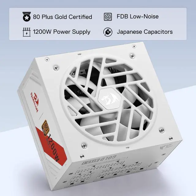Redragon RGMS-1200W PRO 80+ Gold 1200 Watt Power Supply w/Upgraded ATX 3.1 & PCIe 5.1 Fully Modular, Compact 150mm Size, Smart ECO Low Noise Fan, 100% Japanese Capacitors, Full Mod Cables