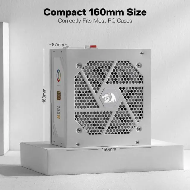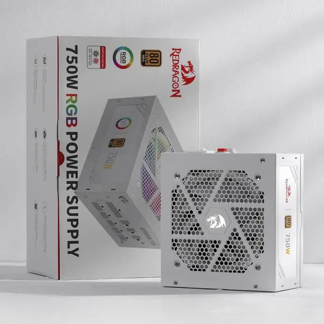 Redragon PSU006 80+ Gold 750 Watt ATX Fully Modular Power Supply w/ 80 Plus Gold Certified, Compact 160mm Size and Low Noise RGB Fan 0 RPM, 100% Japanese Capacitors, Full Mod Cables,White