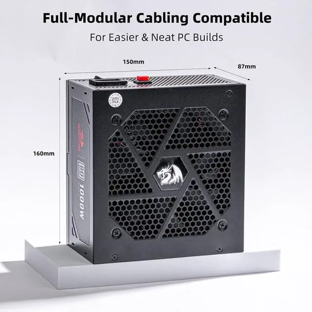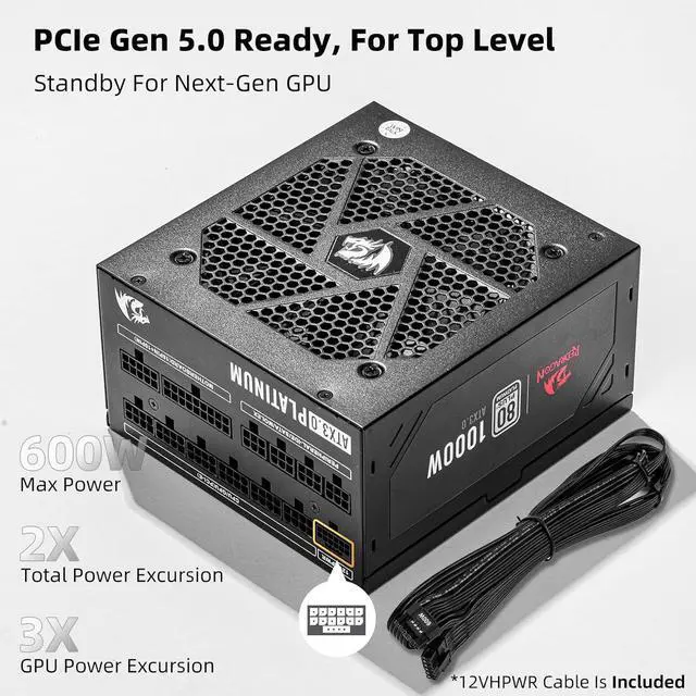 Redragon PSU017 80+ Platium 1000 Watt ATX Fully Modular Power Supply, 80 Plus Certified, 100% Japanese Capacitors & Low Noise Smart-ECO 0 RPM Fan, Full Mod Cables w/12VHPWR Cable, Black