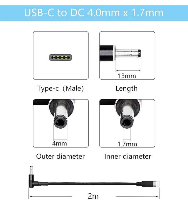 PD & EMARK CHIPS - Built-in a Emark smart chip, it make this USB-C to DC 4.0mm x 1.7mm strong enough to support max 5A current 100W power through,support USB PD fast charging.Also suports 100W 90W 65W 45W 40W,etc power delivery PD rapid charging. (Not support video and data transfer.)NOTE:It does not support bidirectional charging.