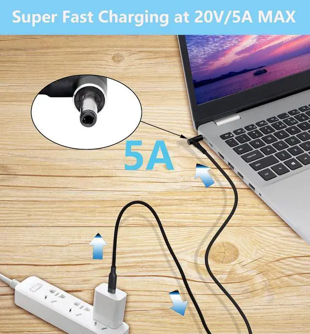 SIMPLE TO USE - Use it with a 100W PD USB-C Charger to conveniently charge your laptop.Please note the USB-C PD wall charger power must be over than the laptop output.For example, the original power supply is 19V 3.33A, and its power is 65w. Then it is better to use the 65W power supply.