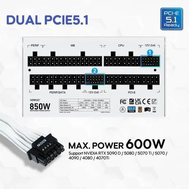 Fully ATX 3.1 Compliant: The newest, most advanced power supply on the market, ideal for any PC manufacturer or gamer