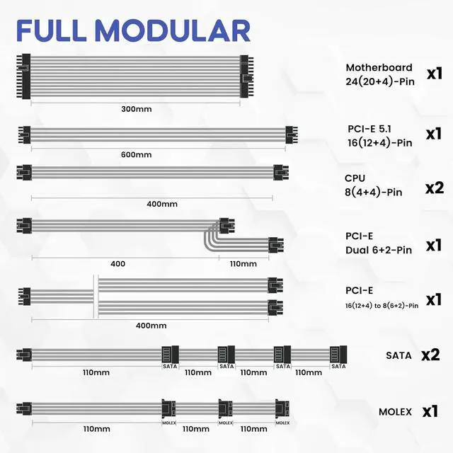 Full Modular Design: Cables can be easily managed by installing only the cables you need, reducing clutter