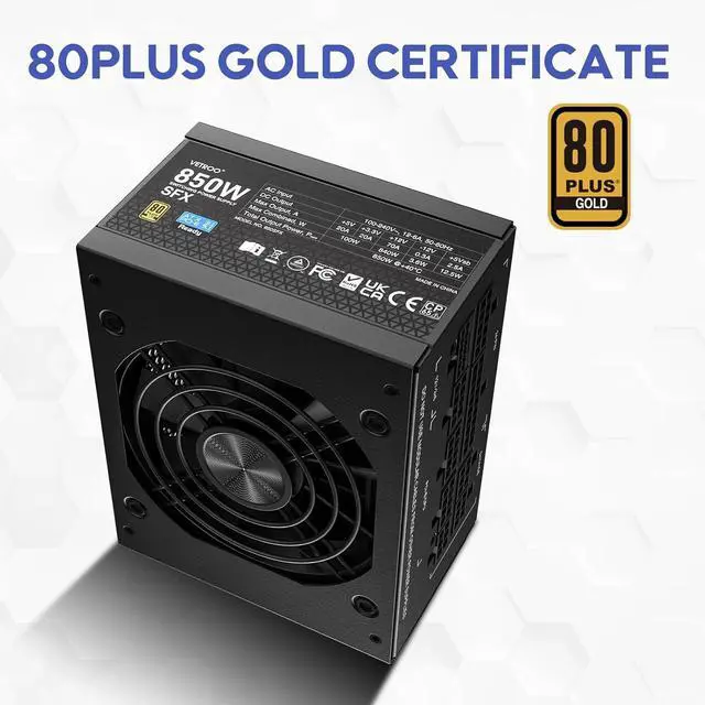 Vetroo 850W SFX Power Supply ATX 3.1 & PCIE 5.1 Ready, 80 Plus Gold Certificate Fully Modular, 90mm FDB Fan for Low-Noise Operation, SFX-to-ATX Bracket, 10-Year Warranty - Black