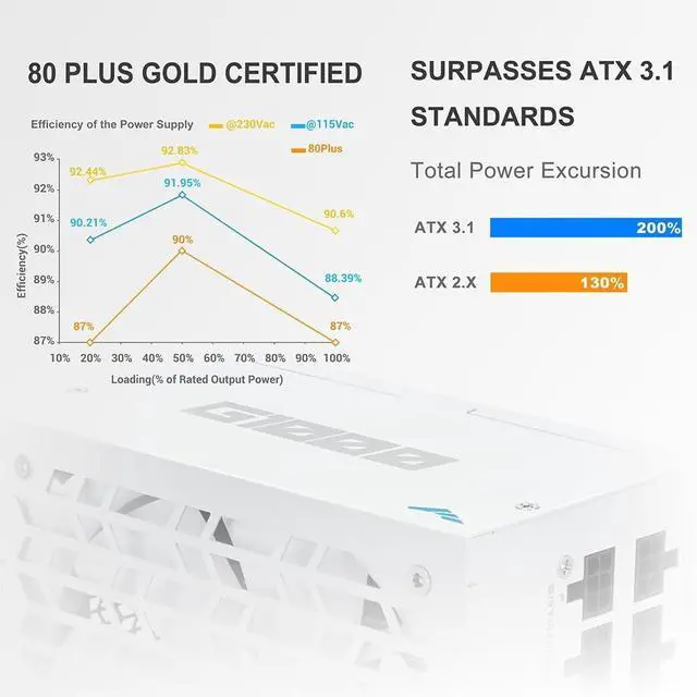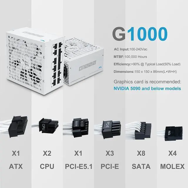 ATX 3.1 & PCIe 5.1 Ready: Designed for next-gen hardware, the G1000 meets Intels ATX 3.1 standard, handling 200% total power excursions and 3x GPU power spikes for rock-solid stability with high-end GPUs like NVIDIAs RTX 40/50 Series.