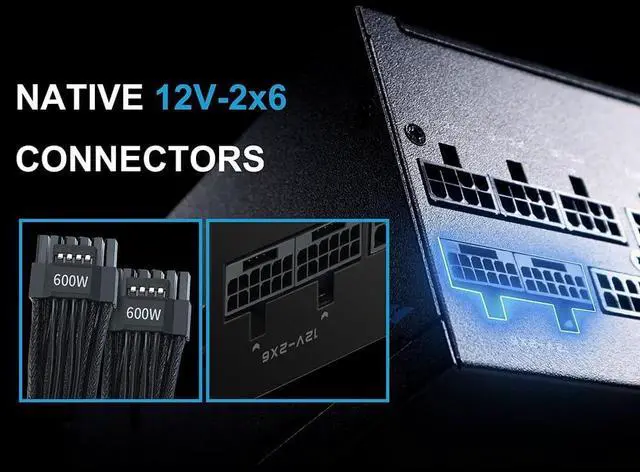 ATX 3.1 Compliant with PCIe 5.1 Support: Engineered to exceed ATX 3.1 standards, this power supply handles extreme power excursions (up to 235% of rated load) for unmatched stability with next-gen GPUs. The native 12V-2x6 connector delivers up to 600W directly to your graphics cardno adapters needed.