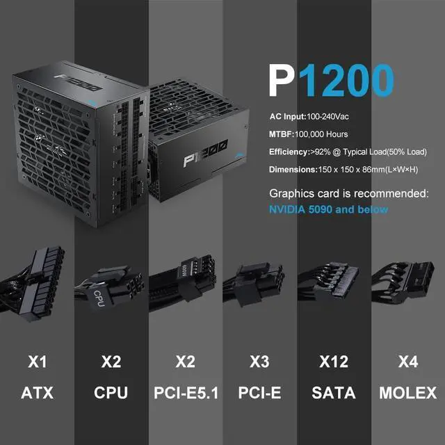 Future-Ready & Compact Design: The P1200s compact 150mm depth fits snugly in tight cases, while its dual 12V-2x6 connectors (exclusive to 1200W model) ensure compatibility with the most power-hungry GPUs. Backed by a 10-year warranty, its a future-proof investment for enthusiasts.