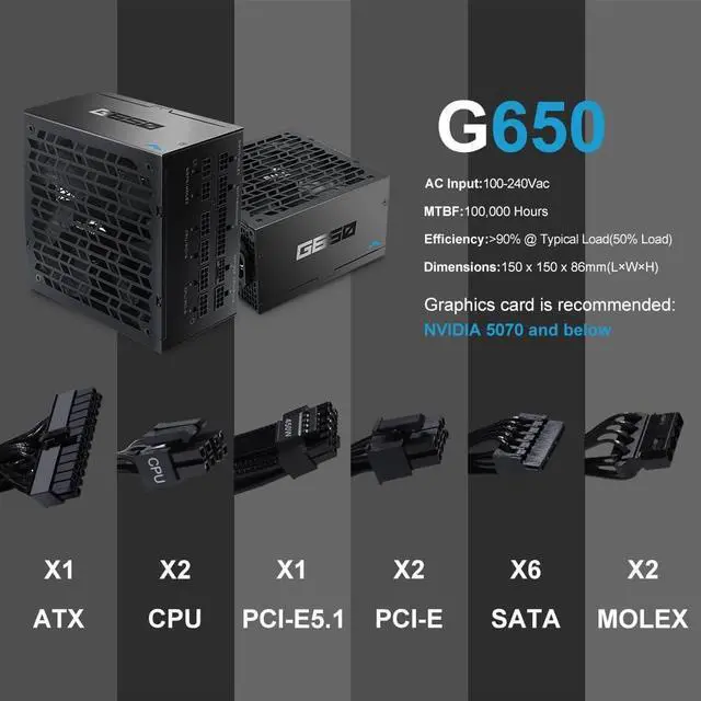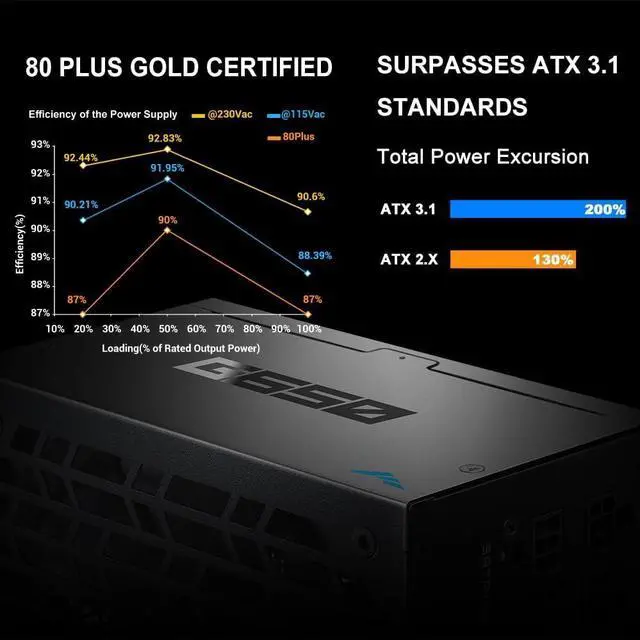 80 PLUS Gold Efficiency: Achieves 90%+ efficiency at 50% load, reducing energy consumption and heat output while providing consistent, reliable power for your system.