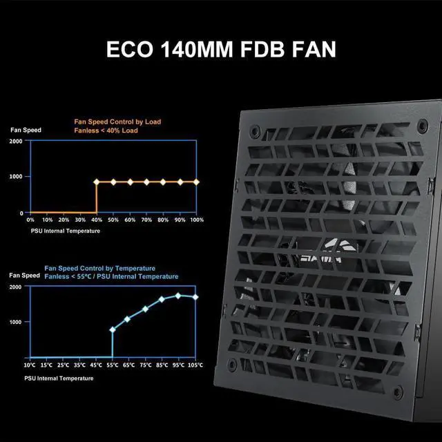 Silent ECO Fan Mode: The 140mm FDB fan stays completely silent under low loads (<40%) and adjusts speed automatically to balance cooling performance and quiet operation.