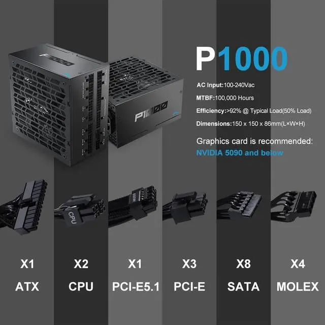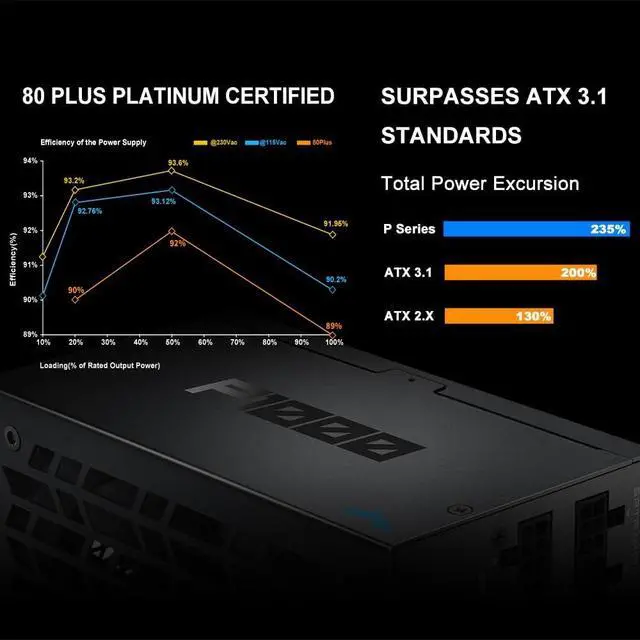 Crush Power Spikes with ATX 3.1: Designed to surpass ATX 3.1 requirements, this power supply delivers 200% power excursion at 100sensuring rock-solid stability for PCIe 5.1 GPUs and high-end CPUs under sudden loads.