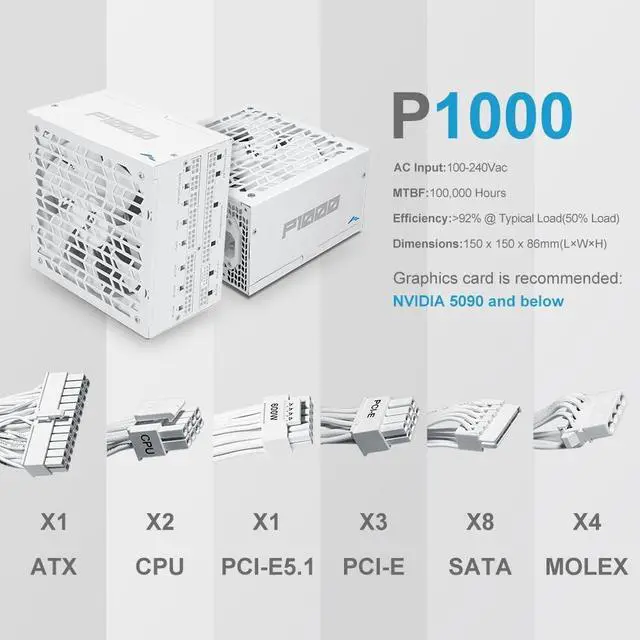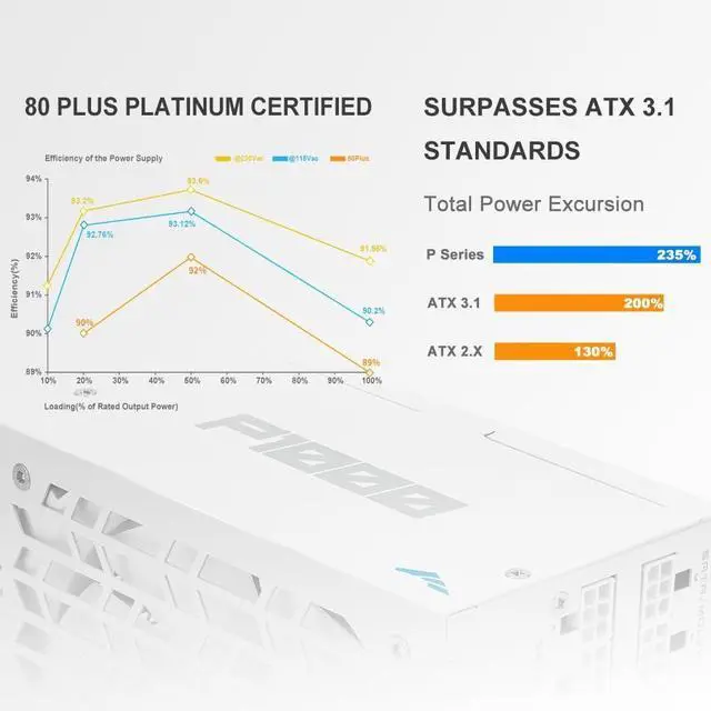 Crush Power Spikes with ATX 3.1: Designed to surpass ATX 3.1 requirements, this power supply delivers 200% power excursion at 100sensuring rock-solid stability for PCIe 5.1 GPUs and high-end CPUs under sudden loads.