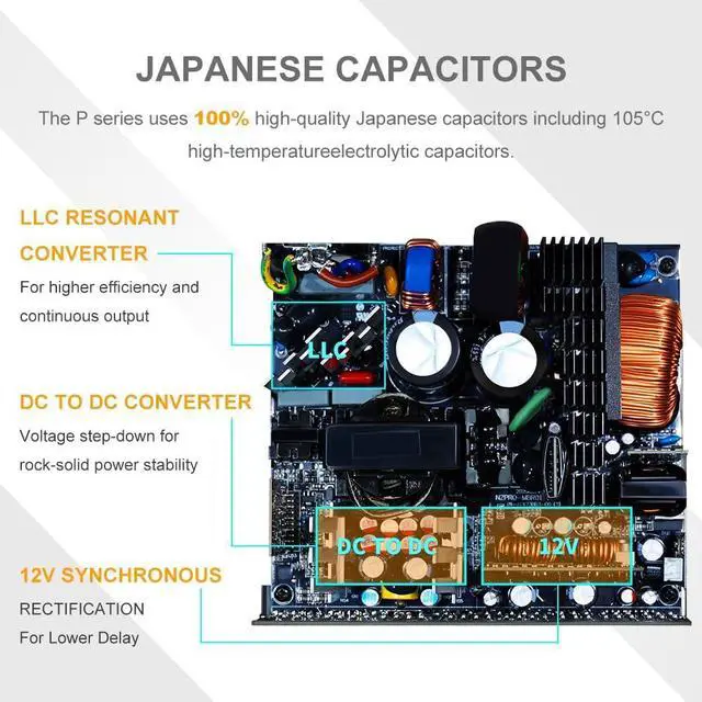 Quiet OperationP1000 got LAMBDA A+ noise rating, equipped with the fluid dynamic bearing fan remains off under light loads below sixty percent and ramps up smoothly with a noise-optimized curve, ideal for silent PC builds without sacrificing cooling.