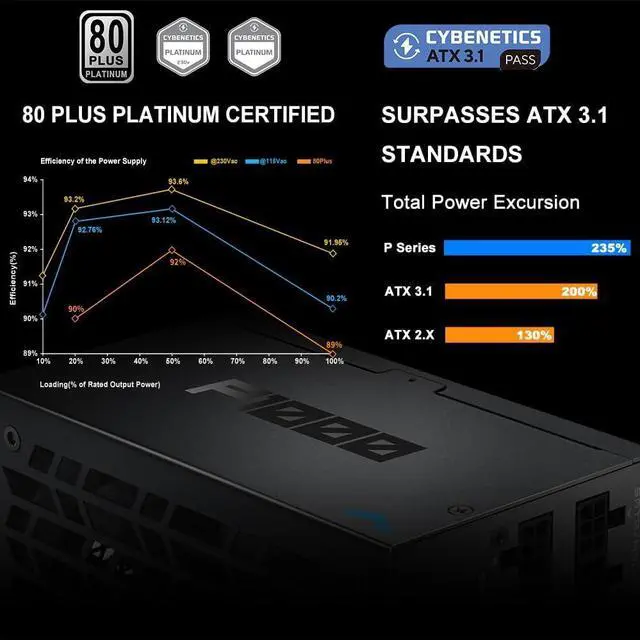 Crush Power Spikes with ATX 3.1: Designed to surpass ATX 3.1 requirements, this power supply delivers 200% power excursion at 100sensuring rock-solid stability for PCIe 5.1 GPUs and high-end CPUs under sudden loads.