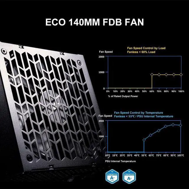 Quiet OperationP1000 got LAMBDA A+ noise rating, equipped with the fluid dynamic bearing fan remains off under light loads below sixty percent and ramps up smoothly with a noise-optimized curve, ideal for silent PC builds without sacrificing cooling.