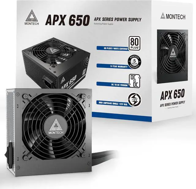 MONTECH APX 650W-Non-Modular Power Supply-80 Plus White Certified-Intel ATX12V-DC-to-DC Converter Technology- Flat Cable Design to Enhance Thermal efficiency-120mm Fan- 5-Year Warranty (APX 650W)