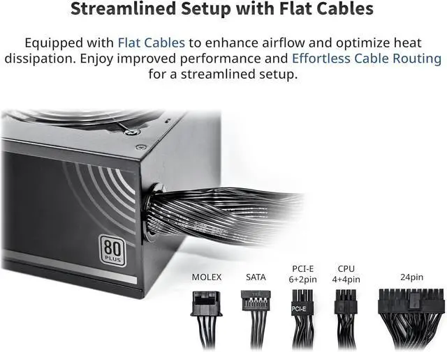 80 PLUS White certified power supply ensures high energy efficiency and minimizing heat generation