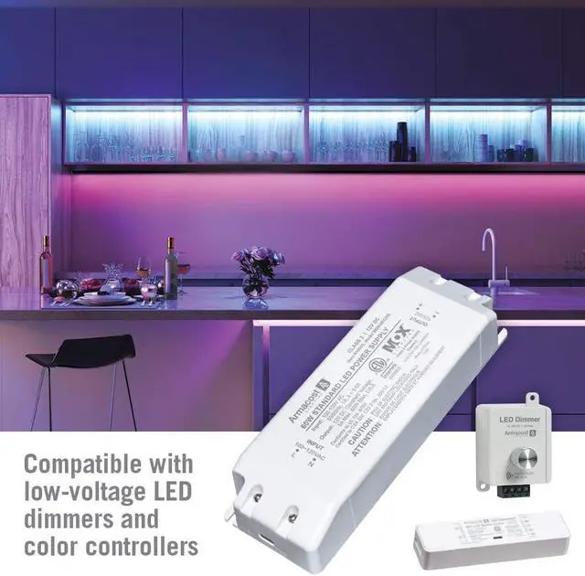 Automatic shut-off in case of lighting overload, open circuit, short circuit, over temperature or other fault. Constant voltage driver provides energy-efficient LED power.