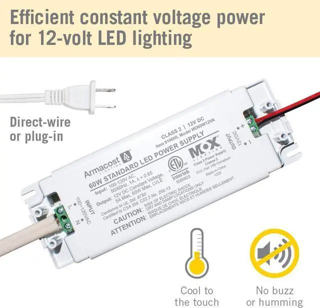 Armacost Lighting 810600 12 Volt LED Power Supply, 60 Watt, White