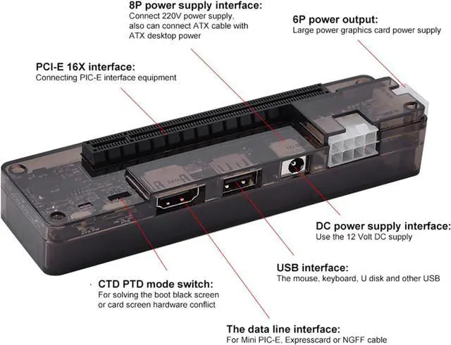 Video Card Dock 8P Power Output Interface Can Connect 220W Power Supply And Atx Cable With Atx Desktop Power.