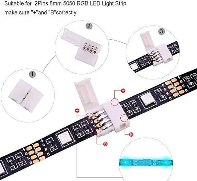 EASIEST TO INSTALL: No soldering, no stripping or cutting, you dont even need any special tools or expertise to install these LED strip light connectors 4 pin. All you need to do is snap down, then plug and play, tool-free installation. So whether you are a professional electrician or not, this easy-to-use LED strip connector is a perfect connection solution for DIY LED strip lighting Project