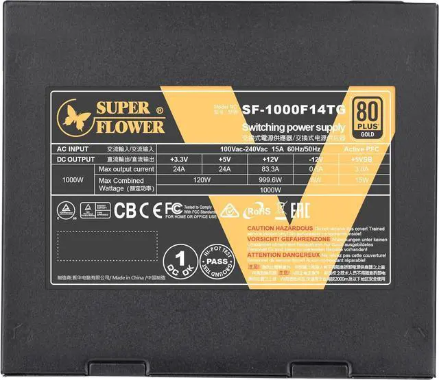 Super Flower Leadex V Gold PRO 1000W 80+ Gold, Smallest 130mm ATX PSU, 10 Years Warranty, Patent Super Connectors, Full Modular with Ultra-Flexible Flat Ribbon Cables, FDB PWM Fan, SF-1000F14TG