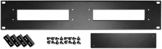 Includes 1 x front plate 483 x 89 mm (19" X 2U) 1 mm steel, Black, powder-coated, 1 x cover plate (198. 8 x 45. 5 mm), 16 x 16x screw (M3 x 5 mm), 4x mounting bracket