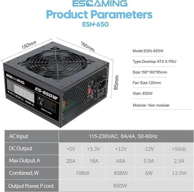 HIGH COMPATIBILITY160*150*86mm,standard ATX form factor design. Plenty of connectors for hardware even a legacy floppy drive power8pin CPU connector can be split apart to 4+4 connector, 8pin PCIe connector can be split apart to 6+2 connector.