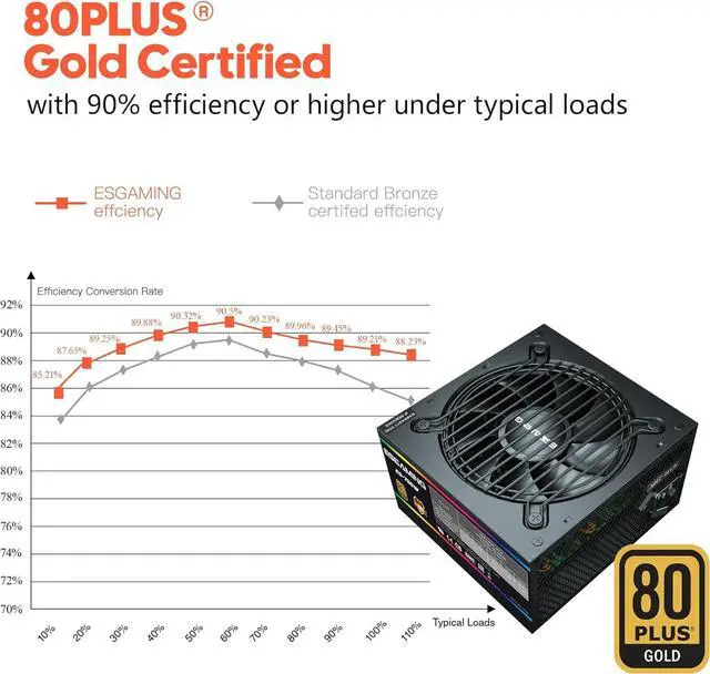 80 Plus GoldAPFC 80 PLUS Gold Certified, the 750 watt power supply provides ultra-high power efficiency of 91% at typical load, reducing heat in your computer's system and prolonging its life.