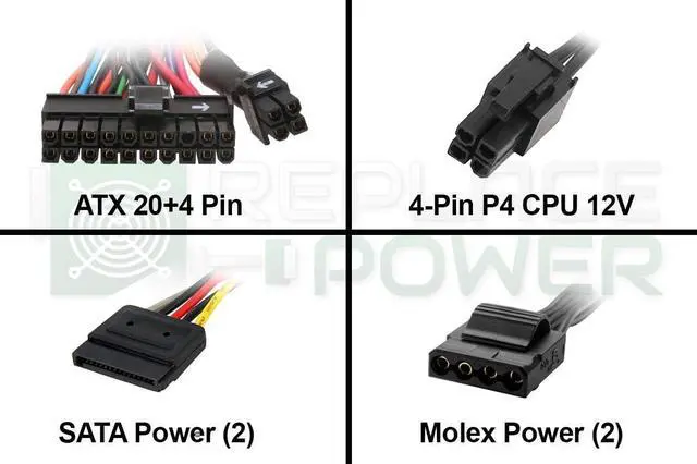 Dead power supply? This replacement PSU is designed to replace several models including the Dell Desktop version of the Optiplex 390 790 7GC81 6MVJH. Connectors: 1 x 20/24 pin, 2 x 4-Pin Molex, 2 x SATA, 1 x 4-PIN (12V)