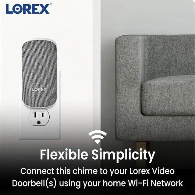 & Hear a clear, customizable chime whenever someone presses your Lorex video doorbell or when motion is detected by connected Lorex cameras or sensors