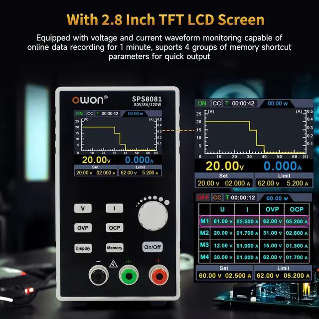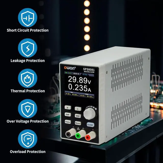 Reliability and Safety: The OWON DC power supply is made of high quality electronic components and stable performance and effectively extend product life.When the OCP function is turned on, if the load equipment is short-circuited during operation, the adjustable power supply will automatically stop output and send a buzzer to alert the user. Provide multiple protection including overheat protection, voltage overload protection, short circuit protection, etc.