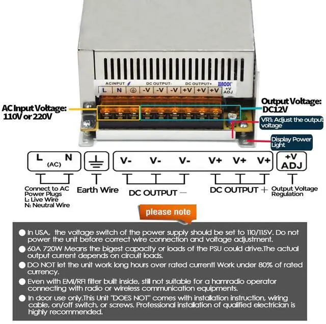 DC24V 30A 720W Power Supply Unit With Dual Input Voltage AC110V/220V and Wide Voltage Input Scope Adjusted Automatically.