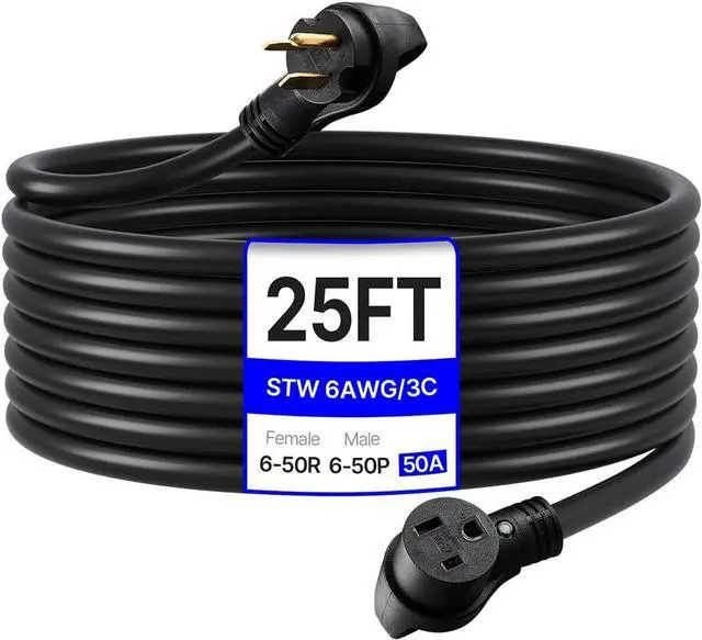 50A Pure Copper Cable: This 6AWG heavy-duty generator extension cord, rated for 50A, is specifically designed for high-power equipment. It seamlessly connects your generator, delivering stable power to your outdoor devices with reliability you can count on