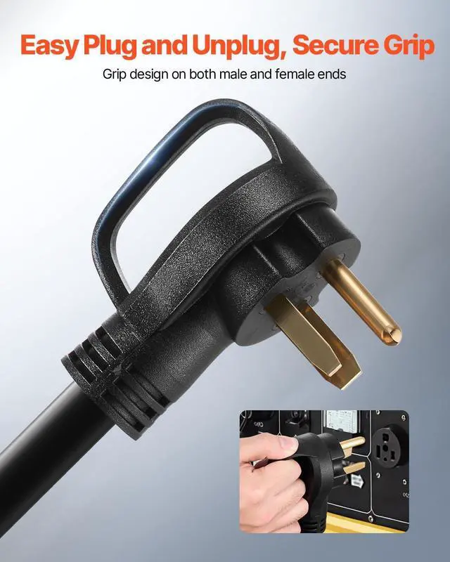 User-Friendly Design: Equipped with a light indicator on the female end, this generator electric cord allows you to check the power connection status at a glance. The ergonomic handle provides a comfortable, firm grip for effortless plugging and unplugging while reducing hand strain during frequent use
