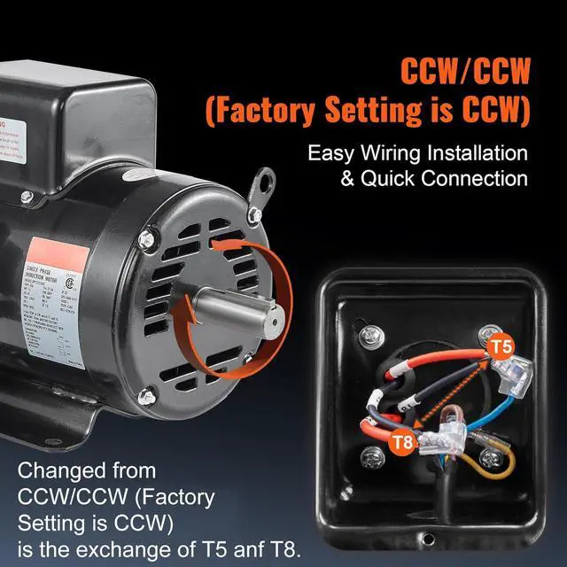 Dual Rotation Direction: Motor is Reversible for CW/CCW, provides easier wiring operations.