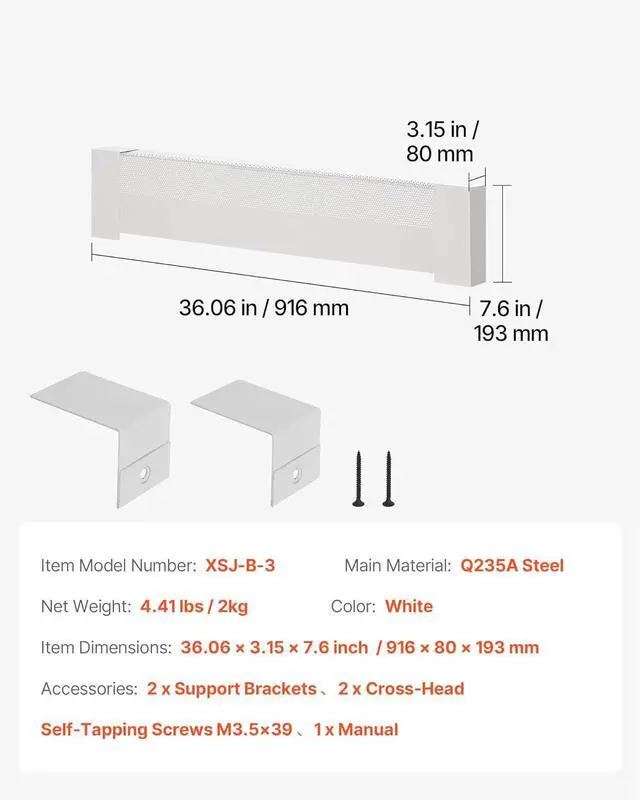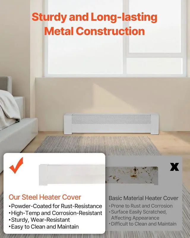 Tough Construction: Made from high-quality steel with a powder-coated finish, this baseboard cover is heat-resistant, wear-resistant, and easy to clean, offering long-lasting protection. Please measure before purchasing for ideal compatibility