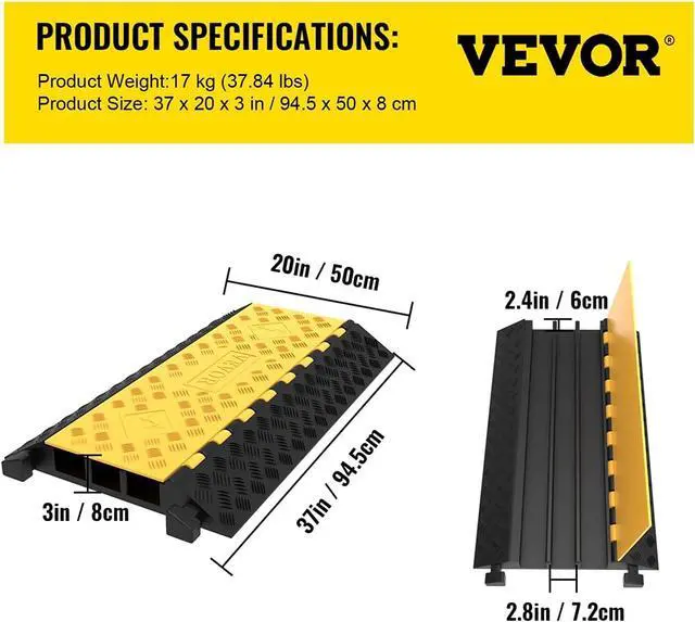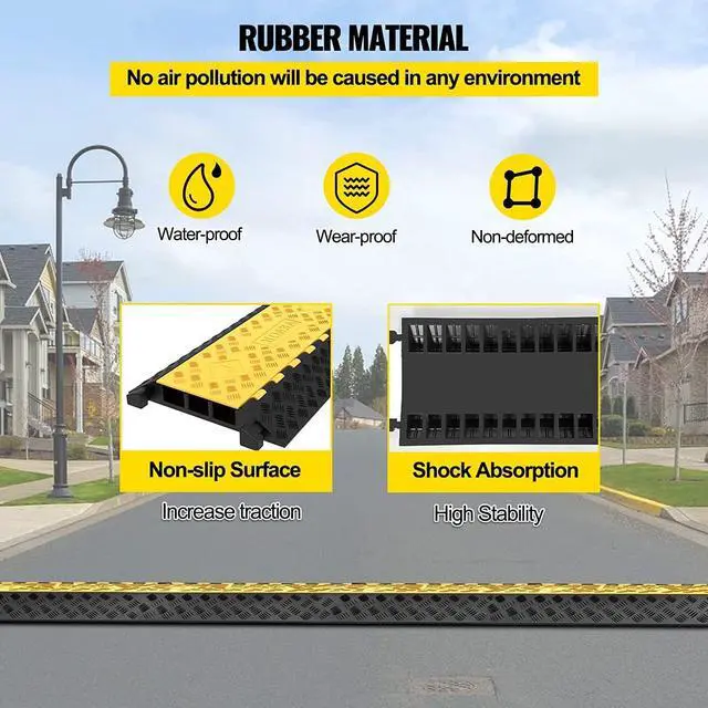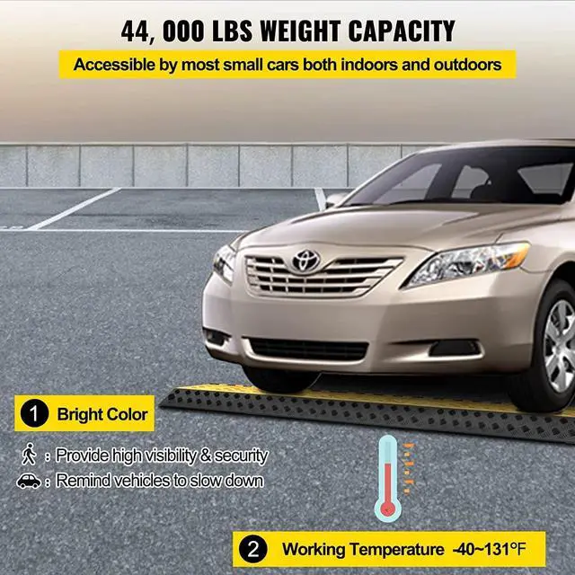 Max. 6600 lbs Capacity: Traditional black+yellow color provides greater visibility at night and in low light environments. The cable protector ramp incorporates a unique design in its appearance to capture the attention of passer-by and drivers to slow off. 6600Lbs load capacity ensures that you can drive your car over the ramp without affecting the cables running inside.